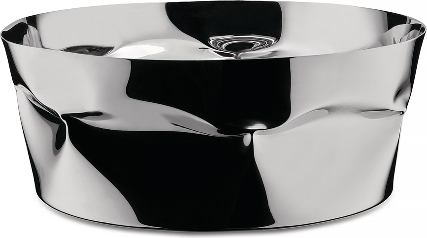 • La forme du récipient rappelle un tissu froissé ou une tôle emboutie, ce qui la distingue nettement des corbeilles à fruits standard.