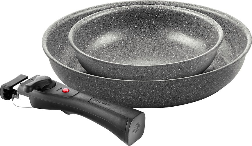Les poêles Torre de Ballarini, avec leur manche amovible, forment un ensemble d'une praticité et d'une commodité extrêmes, idéal pour toutes les cuisines.