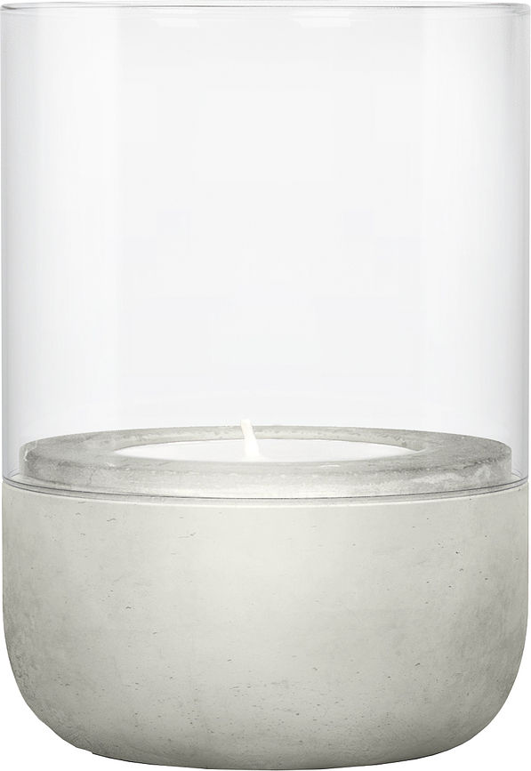 - Le matériau utilisé – le béton – confère à la lanterne un caractère brut et industriel, tandis que le verre dépoli transforme la flamme de la bougie en une lumière douce et tamisée.