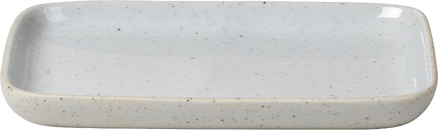L'assiette rectangulaire de la collection Sablo de Blomus est fabriquée à partir d'un mélange d'argile, de quartz, d'oxydes et de minéraux, ce qui lui confère une surface non uniforme et tachetée. Elle est compatible avec le micro-ondes et peut être lavée au lave-vaisselle.