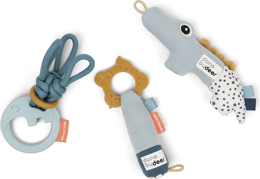 Les hochets Tiny de Done by deer sont trois adorables jouets conçus pour éveiller les sens de votre tout-petit aux différentes formes, textures, sons et couleurs. Parfaits dès l'âge de 2 mois, ces petits trésors sont fabriqués en coton et polyester, garantissant douceur et sécurité pour les petites mains curieuses. Un véritable festival sensoriel pour les bébés en pleine découverte du monde!
