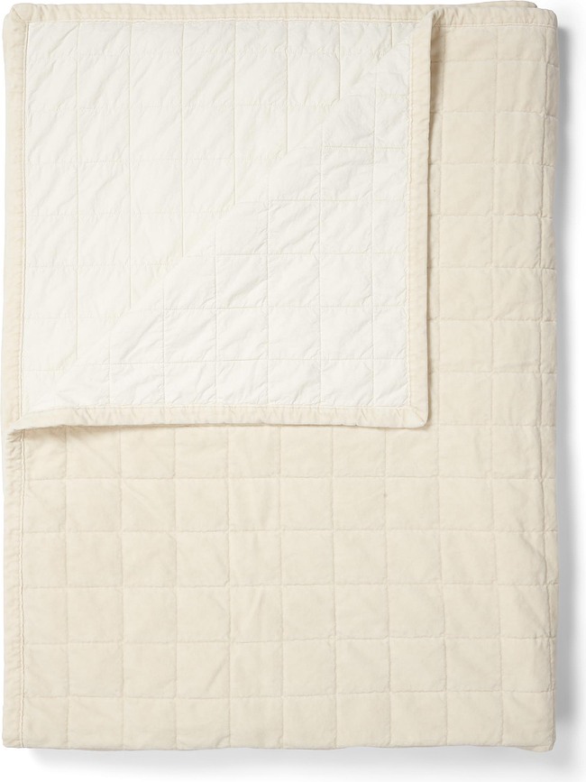 Le jeté de lit couleur sable de la série Julia d'Essenza illumine merveilleusement l'espace. Il a été confectionné en coton et orné de surpiqûres à carreaux.