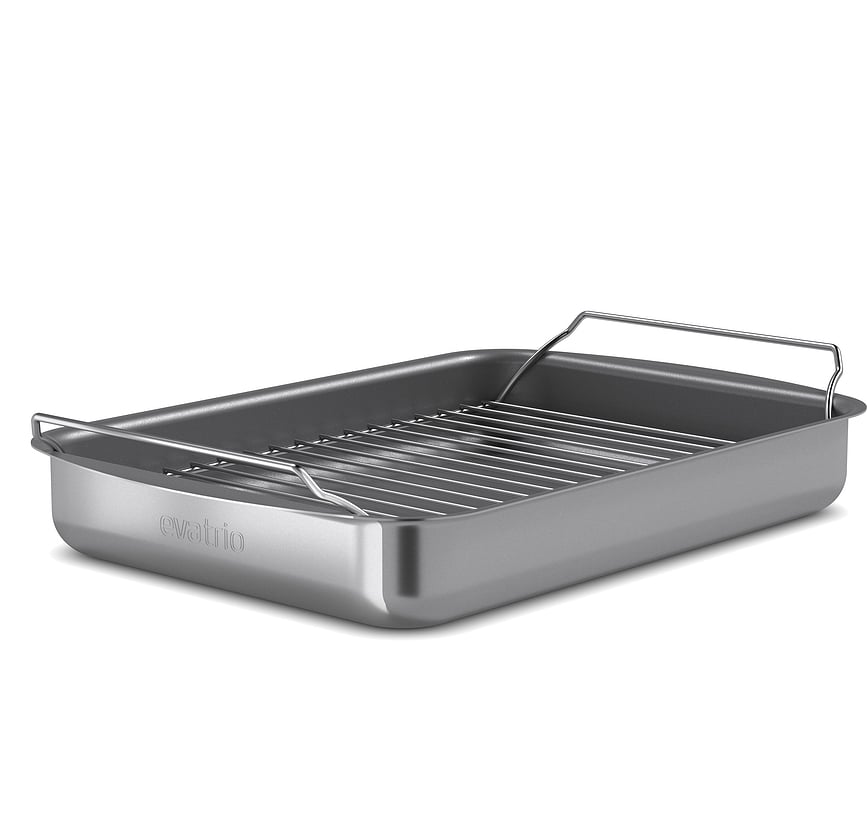 Le plat à rôtir robuste Eva Trio avec revêtement Slip-Let de Eva Solo est parfait pour rôtir et griller viandes et légumes. Et si vous retirez la grille, il se transforme en un moule idéal pour les gâteaux, les pâtés et bien d'autres délices.