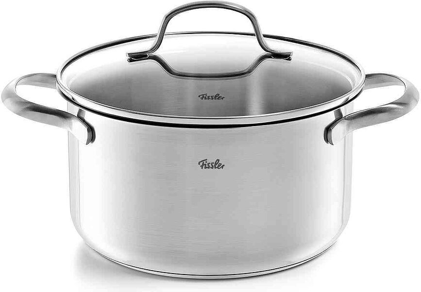 Fabriquée en acier inoxydable, la casserole San Francisco de Fissler est dotée d'un couvercle transparent et de deux poignées latérales. Elle assure une répartition homogène de la chaleur grâce à son fond spécialement conçu. Elle est accompagnée d'une garantie de 2 ans.