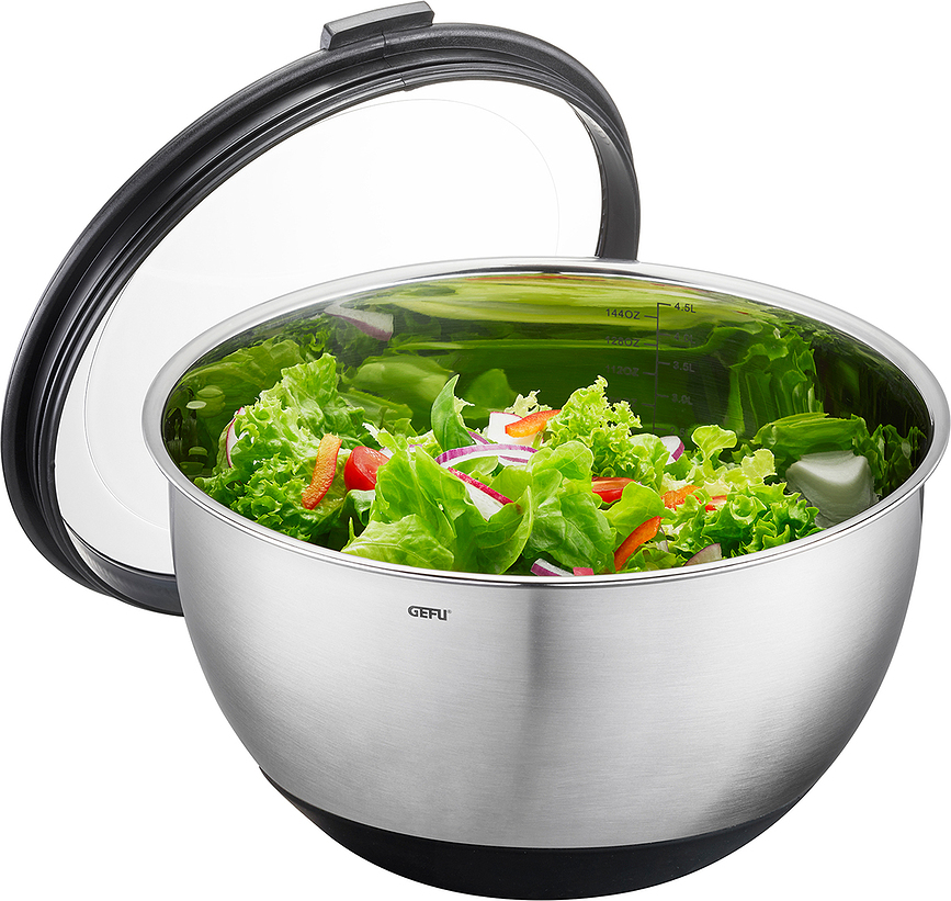 Le bol Muovo avec couvercle de Gefu est un classique qui doit absolument trouver sa place dans chaque cuisine. Il est parfait pour préparer des salades, pétrir de la pâte ou fouetter.