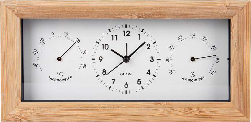 - C'est bien plus qu'une simple horloge – c'est votre station météo personnelle trois-en-un qui, en plus de l'heure, vous indiquera la température et l'humidité ambiantes.