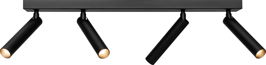 - Le rail de plafond Roll, doté de quatre sources lumineuses, est équipé de quatre tubes droits et étroits se terminant par des LED à faible consommation d'énergie.