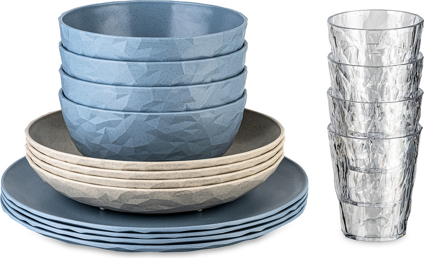 Vaisselle Club Goteborg pour 4 personnes, 16 pièces – Cette vaisselle de Koziol est d'un style résolument moderne et élégant. Parfaite pour servir vos repas à la maison, elle est également idéale pour les escapades, car elle est incassable.