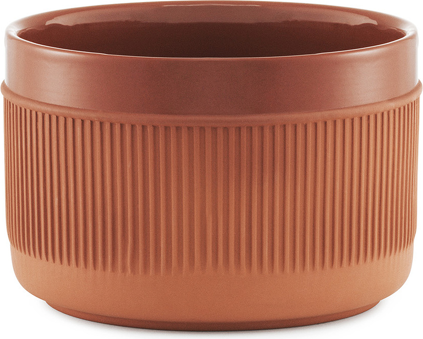 La coupelle Junto est fabriquée en terre cuite, d'où sa couleur si particulière. Elle affiche une forme simple et une décoration sous forme de cannelures subtiles. Elle passe au lave-vaisselle, mais ne doit pas être utilisée au micro-ondes.