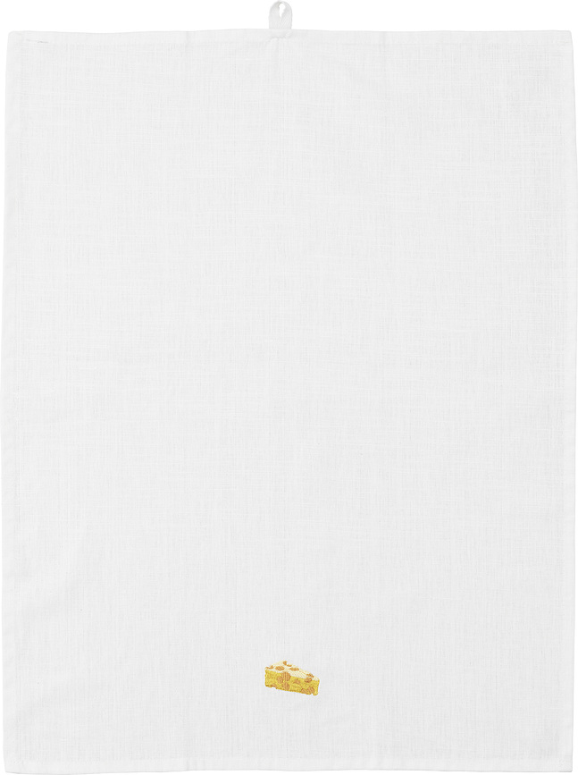 - Il se présente dans un blanc éclatant, agrémenté d'une délicate broderie représentant, selon la version, un citron pétillant, un homard élégant ou un morceau de fromage gourmand. Un détail qui fait toute la différence et qui ne manquera pas de piquer la curiosité de vos convives !