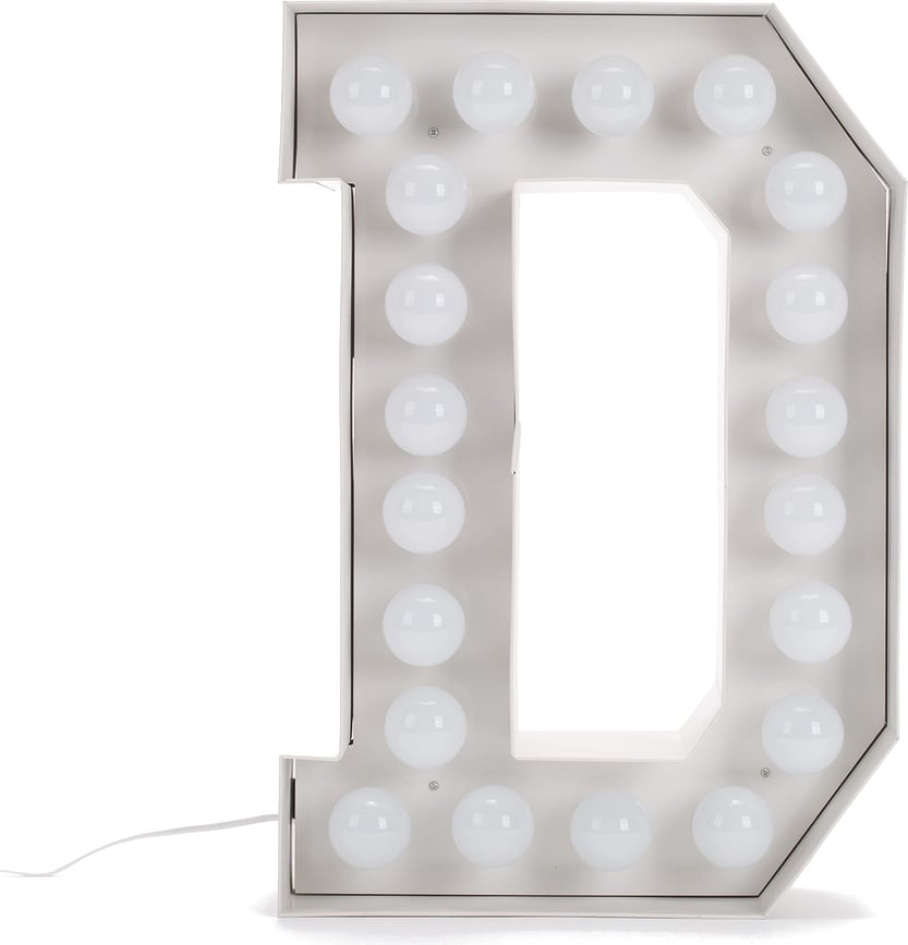 - La série Vegaz de Seletti propose des lettres de l'alphabet équipées d'un chapelet de lumières LED.