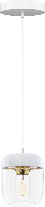 Versions disponibles :- Suspension Acorn blanche, laiton poli, simple, Suspension Acorn blanche, laiton poli, double, Suspension Acorn blanche, laiton poli, triple